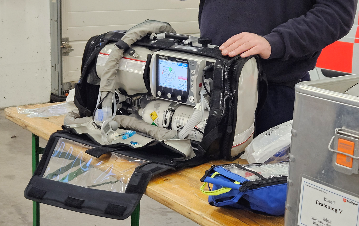 Nach einer kurzen Tour durch das Gebäude mit entsprechenden Erklärungen der verschiedenen Aufgabenbereiche der Malteser, wurden die unterschiedlichen Einsatzfahrzeuge vorgestellt und erklärt. In eines durften die Schüler auch einen etwas genaueren Blick werfen und die Technik erkunden. Auch praktisch wurde natürlich gearbeitet: Der zuständige Verantwortliche für die Schulsanitätsdienste im LDK, Maximilian Benner, hat eine Beatmungsübung samt zugehöriger Technik aufgebaut, so dass die Schüler hautnah erfahren und auch selbst ausprobieren konnten, welche Maßnahmen der Rettungsdienst bei einem Atemstillstand beim Patienten anwendet.